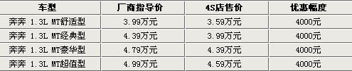 據(jù)長(zhǎng)安轎車4S店銷售人員介紹,奔奔目前現(xiàn)車都比較齊全,但與上月相比,優(yōu)惠幅度明顯有所減少。目前奔奔1.3L四款車型只能優(yōu)惠4000元,比前一段時(shí)間少了1000元。但銷售人員也表示,如果消費(fèi)者到店詳談,還可能有進(jìn)一步優(yōu)惠的余地。