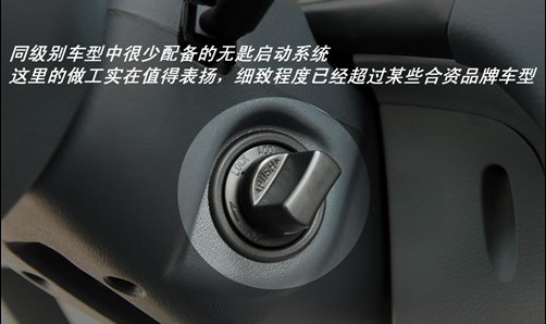 不過V3菱悅裝備的這套無匙啟動系統(tǒng)從樣式到功能都并非我們熟悉的按鈕形式,首先在開車門時還是需要使用鑰匙解鎖,但完成這個步驟后就可以把鑰匙收好了,上車后只要轉(zhuǎn)動轉(zhuǎn)向柱右側(cè)的旋鈕即可啟動發(fā)動機。如遇特殊情況我們也可將旋鈕拆除,此時就變?yōu)槠胀ǖ蔫匙門了。