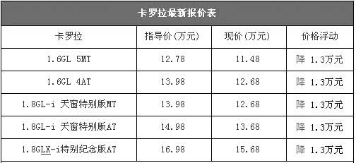 卡羅拉最低僅售11.5萬