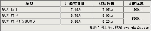 捷達(dá) 優(yōu)惠幅度:優(yōu)惠現(xiàn)金4300元-7500元