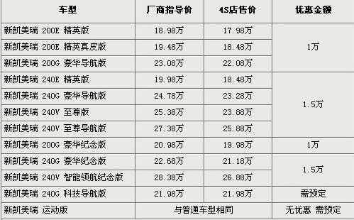 據(jù)4S店銷售人員介紹,凱美瑞在9月份推出了限量版兩款車型,其中包括了運(yùn)動(dòng)版和紀(jì)念版,運(yùn)動(dòng)版全系可以免費(fèi)升級(jí)運(yùn)動(dòng)套件。如果夠買這款車的話需要提前預(yù)訂,價(jià)格和普通車型相同。車價(jià)方面優(yōu)惠幅度在1萬(wàn)元-1.5萬(wàn)元之間,入門級(jí)車型優(yōu)惠后也跌破了18萬(wàn)元。