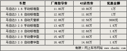 新馬自達3最高優(yōu)惠近2萬 最低僅10.8萬