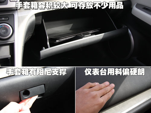副駕駛位置的手套箱帶有阻尼設(shè)計(jì),打開(kāi)時(shí)不會(huì)因重力自由下落,同時(shí)大容積手套箱能夠滿足車主日常放置常用物品的需求。儀表臺(tái)表面用料偏硬朗,但接縫十分勻稱。
