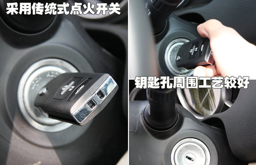 這款2.0L車型采用了傳統(tǒng)式點(diǎn)火開關(guān),實(shí)際使用中點(diǎn)火也很快速,抖動(dòng)不明顯。睿翼頂配車型則配有一鍵式啟動(dòng)按鈕。轉(zhuǎn)向柱周圍的做工較好,塑件縫隙均勻、細(xì)小。