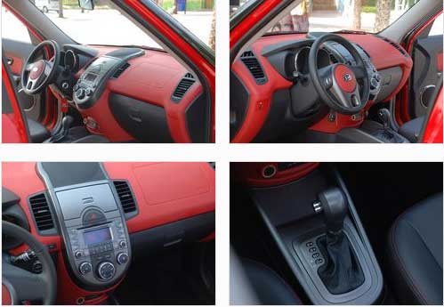 在方向盤也就是駕駛者的周圍分布著很多按鈕,不過別擔(dān)心,再生疏的駕駛者也不會因?yàn)檫@些按鈕或是功能而手忙腳亂,因?yàn)樵O(shè)計(jì)師早已經(jīng)為您的日常使用考慮的很周到了。位于儀表臺左側(cè)的三炮筒式儀表盤設(shè)計(jì)還算時(shí)尚,但是儀表盤的功能并沒有太多新鮮元素的注入,這一點(diǎn)也是因?yàn)槌杀镜目紤]而不得不落入俗套。中控臺左側(cè)下方是控制大燈高度的調(diào)節(jié)按鈕,右側(cè)的控制鈕是SOUL的最大特點(diǎn),即控制前車門揚(yáng)聲器發(fā)光的開關(guān),它可以跟隨音樂節(jié)奏變換紅色燈光的閃爍,如同將迪廳的燈光帶入了車內(nèi)。