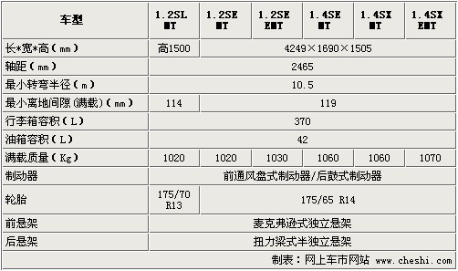 雪佛蘭新賽歐作為一款A(yù)0級(小型車)轎車,表內(nèi)所提供的長、寬、高數(shù)據(jù)相比同級別車型而言占有一定優(yōu)勢。尤其4249mm的車長1690mm車身寬度在一定程度上保證了較好的車內(nèi)空間。而2465mm的軸距表現(xiàn)尚可,并不太突出。除車身尺寸外,行李箱容積達到370升,作為這樣的一款小車而言,著實值得贊揚。特別是在出游時,足夠大的后備箱可以容納下更多的物品,保證了良好的實用性。在制動器及懸掛選擇上,新賽歐都做得中規(guī)中矩,這也是廠家有意控制成本。