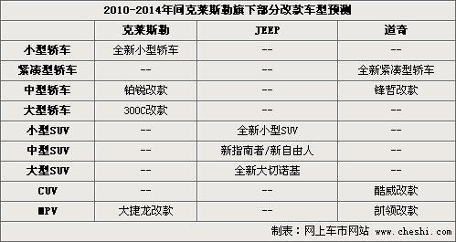 繼意大利汽車制造商菲亞特收購克萊斯勒后,在未來12至18個月內(nèi)將進(jìn)行較大的戰(zhàn)略調(diào)整,多款全新的車型規(guī)劃將陸續(xù)出臺。全新一代克萊斯勒300C轎車和和2011吉普大切諾基越野車首當(dāng)其中,此外在未來18個月內(nèi)還將有5款全新改款車型推出。