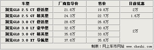 據(jù)4S店銷售人員介紹:目前別克GL8全系大部分車型可優(yōu)惠2萬元,僅有2.5升精英型優(yōu)惠1.6萬元。目前2.5排量車型2款均有現(xiàn)車,但顏色并不齊全,主要有銀色及藍(lán)色。3.0升車型無現(xiàn)車,預(yù)定需等2-3周時(shí)間,優(yōu)惠也可到2萬元。目前GL8系列車型經(jīng)過優(yōu)惠后,最低售價(jià)不足20萬元。