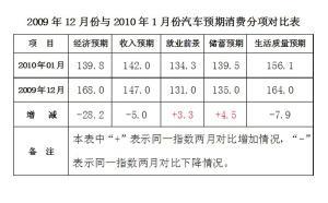 通過(guò)與2009年12月份的數(shù)據(jù)對(duì)比發(fā)現(xiàn)(見(jiàn)左圖),就業(yè)前景與儲(chǔ)蓄預(yù)期與上月相比略有上升,但幅度很小。第一個(gè)月居民對(duì)經(jīng)濟(jì)形勢(shì)的預(yù)期要比去年12月份略低28.2,說(shuō)明居民對(duì)經(jīng)濟(jì)前景表明了一種較為謹(jǐn)慎的樂(lè)觀,尤其是進(jìn)入一月份以來(lái),宏觀政策再次調(diào)控房?jī)r(jià),這對(duì)于很多人的經(jīng)濟(jì)預(yù)期或多或少都有影響。但從總體來(lái)看,前后兩個(gè)月的平均變化為6.7,變化不是很大。