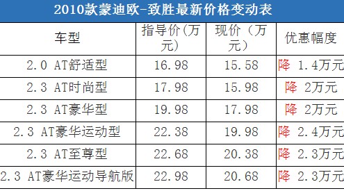 近日,編輯從長安福特北京綜合經(jīng)銷商處了解到,蒙迪歐-致勝的現(xiàn)車比較充足,目前購車最高可以優(yōu)惠2.4萬元現(xiàn)金,與去年末的降價幅度持平。據(jù)經(jīng)銷商透露,消費者要想以這個價格提車,需要在店內(nèi)做購車一條龍服務(wù),其中車輛四項基本保險的折扣為9折。以下是蒙迪歐-致勝最新價格變化表: