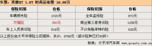 以指導(dǎo)價16.99萬的英朗XT 1.6T 時尚運(yùn)動型為例,保險方面購買了第三者50萬元責(zé)任險,每年的保險費(fèi)用為6789元。