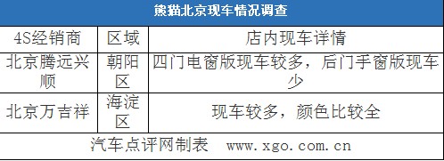 北京地區(qū)僅有兩家熊貓4S經(jīng)銷(xiāo)商,調(diào)查結(jié)果顯示,熊貓四門(mén)電窗版車(chē)型現(xiàn)車(chē)數(shù)量充裕,顏色較全,而后門(mén)手窗版車(chē)型現(xiàn)車(chē)較少,需預(yù)定。價(jià)格方面,兩家4S店的報(bào)價(jià)比較統(tǒng)一,均表示能現(xiàn)金優(yōu)惠4000元,購(gòu)車(chē)后可贈(zèng)送一些裝飾品,詳情需要到店面談。
