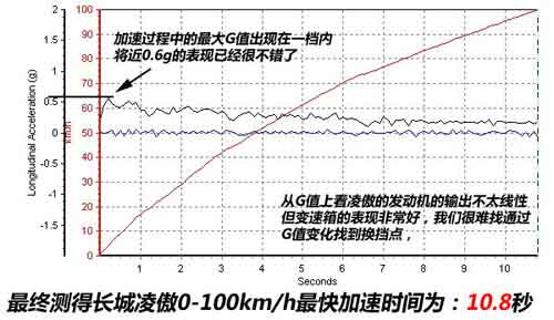 雖說從參數(shù)上看,這款GW4G15發(fā)動機(jī)的最大扭矩是出現(xiàn)在4000rpm左右,但在測試時編輯發(fā)現(xiàn)用4000rpm起步后轉(zhuǎn)速會掉的很多,沒有做到最大扭矩起步的目的。所以編輯嘗試5000rpm起步,凌傲的前輪難以避免的出現(xiàn)了打滑的情況,不過車身抬頭的情況并不是特別明顯,這個轉(zhuǎn)速起步后,發(fā)動機(jī)的轉(zhuǎn)速雖然也會掉,但離最大扭矩輸出的點(diǎn)比較靠近,所以起步效果比4000rpm還要好一點(diǎn)。最終凌傲0-100km/h的最好加速成績?yōu)?0.8秒,這個成績在這個級別的國產(chǎn)車中是比較靠前的成績!
