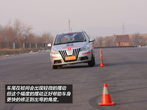 穿樁測試環(huán)節(jié),凌傲的轉(zhuǎn)向非常準(zhǔn)確,四輪四角的設(shè)計讓它在樁間顯得異常靈活。由于這款車 不帶ESP功能,所以車尾在樁間會出現(xiàn)輕微的擺動,但這個幅度的擺動正好幫助車身更快的修正到出彎的角度?梢哉f,凌傲在裝桶間具有較高的駕駛樂趣。