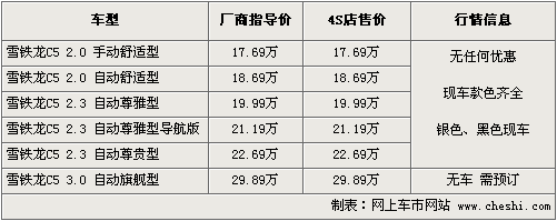 筆者從東風(fēng)雪鐵龍經(jīng)銷商處了解到,目前C5全系有舒適版、尊雅版以及尊貴版現(xiàn)車供應(yīng),主要有銀色、黑色、藍(lán)色外觀可選,顏色不齊全,其他款需要預(yù)定,訂金為2000元-5000元。同時4S店提供2.3排量試駕車供消費者體驗。目前全系車型尚沒有出現(xiàn)優(yōu)惠幅度。
