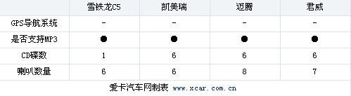 比較遺憾的是四款車都未配備GPS導航系統(tǒng),消費者只能另掏腰包。而邁騰1.4T DSG車型在音響方面總共配備了8個喇叭,同級比較罕見。