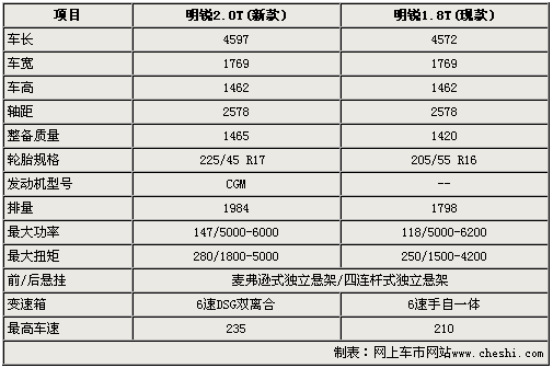 在外形參數(shù)方面,新明銳除車(chē)身長(zhǎng)度方面較現(xiàn)款車(chē)型長(zhǎng)出25mm外,其車(chē)寬、車(chē)高以及軸距均與新款明銳完全一致,由此可以看出新明銳僅為小改款車(chē)型。在動(dòng)力方面,新明銳性能版車(chē)型搭載了現(xiàn)款明銳從沒(méi)有配備的2.0TSI燃油直噴渦輪增壓引擎,而6速雙離合變速器也較現(xiàn)款明銳配備的6速手自一體變速箱換擋更加迅速。