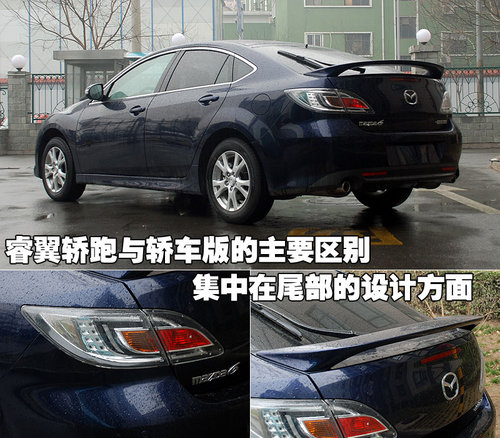 睿翼轎跑與轎車版的主要區(qū)別主要集中在尾部的設(shè)計方面,在保留第一代馬自達6轎跑運動元素的基礎(chǔ)上,融入了高級感和時尚元素。掀背式的尾門開啟方式,讓消費者可以更加從容的取放大件物品,而后備箱開啟按鈕的設(shè)計則與睿翼沒有區(qū)別。
