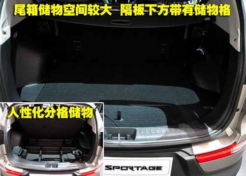 對(duì)于起亞SLC而言,儲(chǔ)物是它的最大強(qiáng)項(xiàng),當(dāng)后排座椅完全放倒下,備箱儲(chǔ)物空間進(jìn)一步加強(qiáng)。另外備箱的開口也很大,便于取放較大的物品。備箱隔板下另設(shè)有暗藏的儲(chǔ)物格,并且?guī)в蟹指粼O(shè)計(jì),存放小物品時(shí)也更加方便,人性化設(shè)計(jì)值得稱贊。