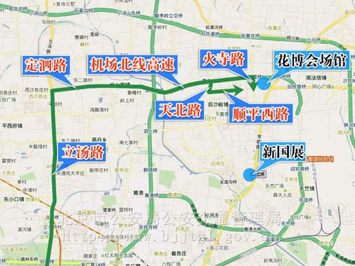 (二)由湯立路經(jīng)定泗路、機(jī)場(chǎng)北線高速路、火寺路出口、火寺路;或由機(jī)場(chǎng)北線高速路天北路出口經(jīng)天北路、順平西路至花博會(huì)場(chǎng)館自駕車停車場(chǎng)。