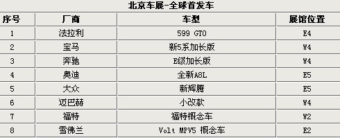 隨著中國(guó)汽車市場(chǎng)地位的日益提高,各大廠商越來越重中國(guó)市場(chǎng),因此北京車展也引來了越來越多的全球首發(fā)新車。這屆北京車展將有8款新車全球首發(fā),包含新5系Li和E級(jí)加長(zhǎng)版,兩款新車將在車展后國(guó)產(chǎn)上市。大眾集團(tuán)除了占據(jù)一個(gè)展館之外,也帶來了兩款全球首發(fā)新車,分別為全球A8L和新輝騰。