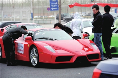 這些私家跑車車主組成的“超跑看車團”高調光臨北京車展。據(jù)悉,他們昨天又在車展上購入了數(shù)輛跑車。(張沫 陳婷)