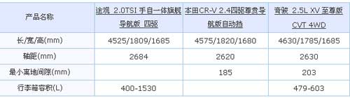 從車內(nèi)空間與乘坐的人性化設(shè)計(jì)來(lái)看,都不得不承認(rèn)——途觀是3款車中的勝利者;而CR-V則只是顯露出了幾分老態(tài);奇駿的車內(nèi)乘坐空間表現(xiàn)還不錯(cuò),匠心獨(dú)具的后備箱是一大亮點(diǎn)。