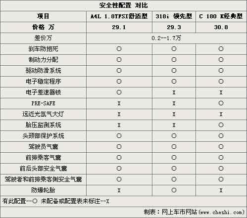 在主動安全性能方面三款車型所能提供的電子系統(tǒng)都比較細致,一般消費者所注意的ABS、ESP功能都能夠在3款車型的系統(tǒng)中體現(xiàn)。被動安全方面,前排雙氣囊、側面氣囊、氣簾都是3款車型的標準配置。其中奔馳基于車輛整體安全考慮研發(fā)的PRE-SAFE安全系統(tǒng)通過主動、被動以及車窗等設備為駕乘者提供綜合的安全保障,這方面的確要比其它兩款競爭車型更為細致。因此,在這樣的基礎上您可能也會選擇安全配置更加全面的那一款。