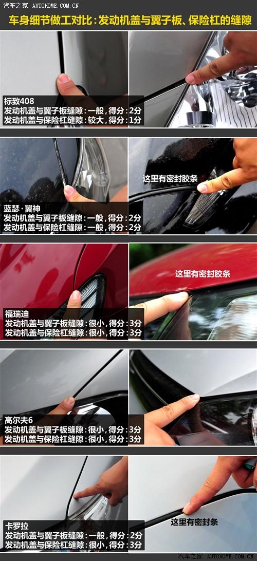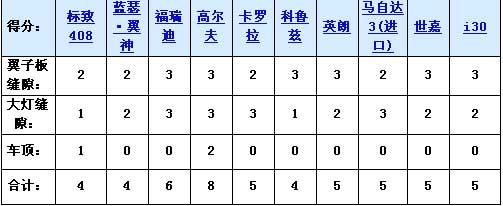 2、發(fā)動(dòng)機(jī)蓋與大燈的接縫。十款車相比的話,縫隙較小的3分;有些車縫隙中有密封條,視為縫隙較;縫隙一般大的得2分,縫隙較大的得1分。