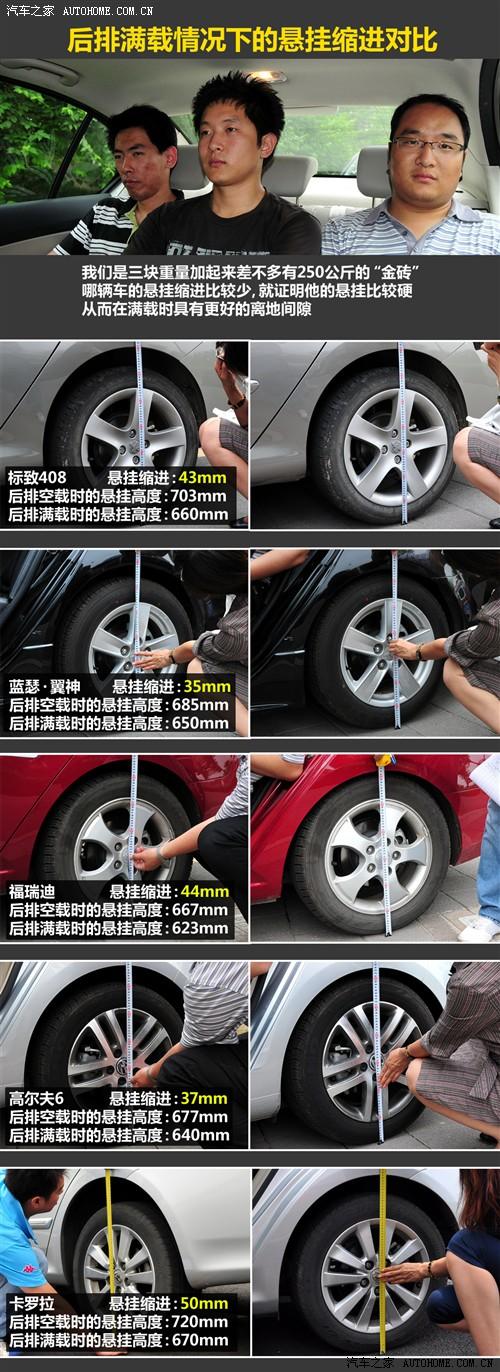 為什么進(jìn)行懸掛縮進(jìn)的對比呢?因為緊湊型車大部分都是作為家庭用車,而且因為我們的車輛保有率還不是很高,所以經(jīng)常一車多用,后排坐滿乘員的情況并不稀奇,甚至當(dāng)做貨車使用也不是沒有可能,而太軟的懸掛在面對這種大強(qiáng)度的承載時就會出現(xiàn)“塌屁股”的現(xiàn)象,這也就是為什么捷達(dá)、邁騰、天籟等車型出現(xiàn)塌屁股的重要原因。