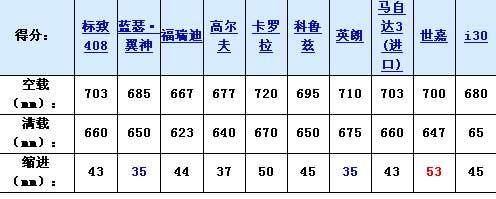 我們進(jìn)行懸掛縮進(jìn)的對比,目的就是看看10款車中誰的懸掛承載能力比較優(yōu)秀,但是要知道這是一把雙刃劍:每款車的設(shè)計側(cè)重點(diǎn)不同,偏重舒適性的車型往往懸掛較軟,在這項對比中處于不利地位,但乘坐路感模糊,較為舒適;偏重操控性的車型往往懸掛較硬,在這項對比中處于有利地位,但乘坐顛簸感較強(qiáng),舒適性不足。所以這項測試僅僅是向大家展示10款車的懸掛壓縮程度,而不具有任何對比的成分,也不計入對比分值,希望大家理解。