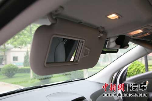 圖注:ix35的遮陽板化妝鏡很有意思,雖然兩側(cè)都帶有照明燈,燈的開關(guān)卻是獨(dú)立的,需要按動(dòng)開關(guān)才能打開。不過遮陽板在合上時(shí)剛好會(huì)觸動(dòng)開關(guān),關(guān)掉照明燈,倒是不用擔(dān)心會(huì)因?yàn)橥涥P(guān)燈而把電瓶耗干。