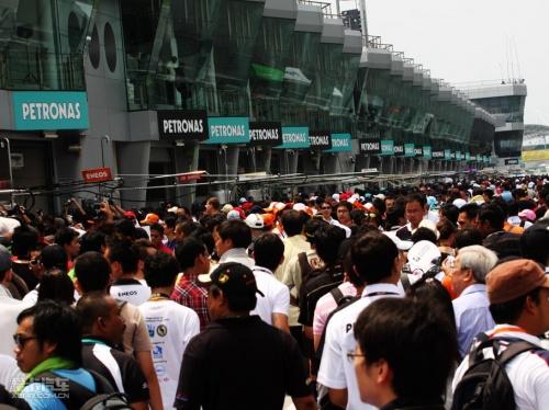維修通道開放時(shí)大量觀眾涌入,可見SUPER GT的火爆場面↑