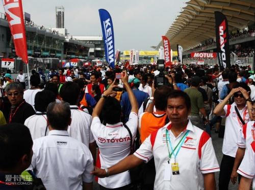 正賽開始前,所有賽車和模特都將走上賽道,此時(shí)會(huì)對賽會(huì)嘉賓開放賽道15分鐘,以供大家與自己喜愛的車手和模特們拍照。只是在這短短的15分鐘內(nèi),賽道上足以變得水泄不通,可見SUPER GT的火爆程度。
