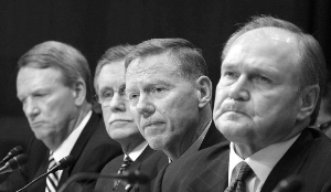 在巨大的生存壓力下,上周美國三大汽車巨頭通用汽車、福特汽車、克萊斯勒汽車的首席執(zhí)行官驅(qū)車845公里前往首都華盛頓,以求國會給予共計340億美元的貸款。經(jīng)歷了兩天折磨人的拷問后,三大汽車巨頭終于獲悉:有望得到150億美元至170億美元的貸款,今日國會將對此進行投票表決。