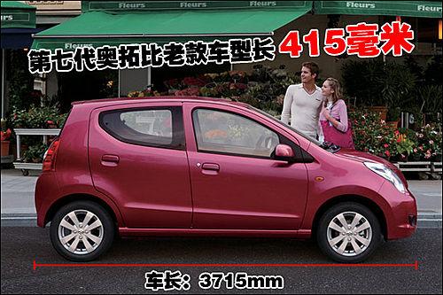 作為全面升級的換代車型,第七代奧拓的車長可達3715毫米,比國內市場銷售的老款奧拓車型要長出415毫米。主要是車身軸距及前臉的設計使第七代奧拓和老款車型產生如此大的差距,而全新奧拓的車內腿部空間將更加寬敞。