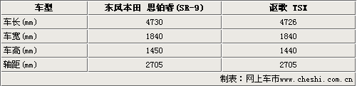 東風本田思鉑睿SR-9的原形車就是本田高端品牌謳歌TSX,因此這兩款車型在車身尺寸上沒有太大的出處,這一點從上表得數(shù)據(jù)我們就可以看出。東風本田思鉑睿和謳歌TSX在軸距方面完全相同,都是2705mm。因此兩款車型在內部尺寸上不會有太大的差距。思鉑睿和謳歌TSX這兩款車型不僅車身尺寸大致相同,就連設計風格也同出一轍。