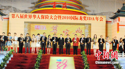 中新網(wǎng)重慶8月6日電 (連肖)6日晚,華人保險(xiǎn)業(yè)最高榮譽(yù)——2010年國際龍獎(jiǎng)IDA頒獎(jiǎng)儀式在重慶舉行,近兩千保險(xiǎn)界華人獲獎(jiǎng),932位獲獎(jiǎng)?wù)邅碛宓桥_領(lǐng)獎(jiǎng)。