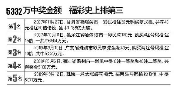 相關(guān)報道:珠海5332萬中獎金額 福彩史上排第三