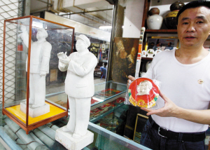 市場里,以前遍地皆是、賣價不到1元的普通毛主席像章,現(xiàn)在5元以下拿不到,品種好的賣價甚至高達上千元;印有毛澤東語錄的文革瓷擺件,已賣到了1000多塊;而上世紀50年代初出版的毛澤東選集也從100元/套漲到了500元/套;甚至連以前人手一本的“紅寶書”,現(xiàn)在價格也翻了好幾番,賣到40多塊。