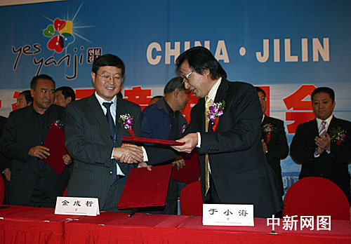 會上,還舉行了延吉市與北京宇辰集團(tuán)合作總投資十億元,建設(shè)延吉市朝鮮族民俗風(fēng)情園;延吉市與上海金太陽能源科技開發(fā)有限公司合作總投資二十二億元,建設(shè)年產(chǎn)一百二十兆瓦銅銦鎵硒太陽能電磁板和太陽能空調(diào)機(jī)項目等五個項目的簽約儀式,共計投資三十三億元。