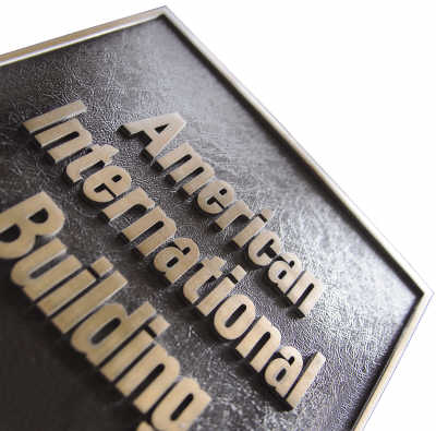 AIG標(biāo)識現(xiàn)在矗立于其全球總部——美國國際大廈,黃銅色鐫刻的“美國國際大廈”的標(biāo)志已然成為公司的招牌。這座大廈坐落在紐約松木街的街角處,繼世貿(mào)大廈倒塌后成為曼哈頓區(qū)的最高大樓。AIG曾表示,或?qū)⒊鍪圻@座總部大樓,籌集更多資金以償還政府貸款。