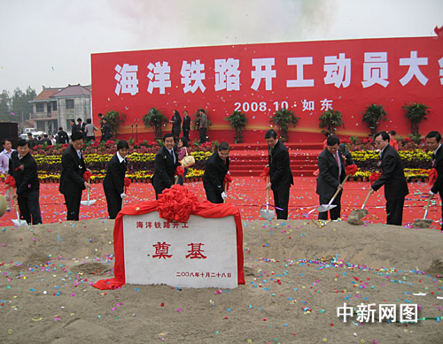 海洋鐵路奠基儀式現(xiàn)場(chǎng)。