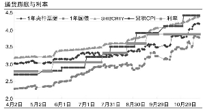 根據(jù)目前對(duì)CPI的估算,年初至11月底,預(yù)計(jì)CPI累計(jì)上升4.6%;而根據(jù)預(yù)測,2007年CPI將達(dá)到4.7%,如果不加息,那么真實(shí)利率將為-1%(3.87%×0.95-4.7%)。而且,如果通貨膨脹沒有如央行預(yù)期下降,那么央行將面臨更大的升息壓力。
