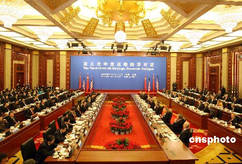 中新網(wǎng)北京12月12日電(記者 王巖 俞嵐 翁陽) 第三次中美戰(zhàn)略經(jīng)濟對話十二日在北京舉行,中國國務院副總理吳儀和美國財長保爾森主持會議。