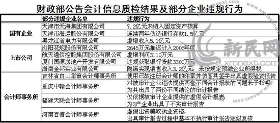 針對(duì)檢查發(fā)現(xiàn)的問(wèn)題,各級(jí)財(cái)政部門依法進(jìn)行了嚴(yán)肅處理。其中,對(duì)瀏陽(yáng)花炮股份有限公司、海南金邦實(shí)業(yè)有限公司等違規(guī)企業(yè)予以罰款、補(bǔ)稅、調(diào)賬等處理處罰,對(duì)相關(guān)企業(yè)的法定代表人和財(cái)務(wù)負(fù)責(zé)人分別予以罰款、吊銷會(huì)計(jì)從業(yè)資格證書等處罰,對(duì)應(yīng)予追究刑事責(zé)任的責(zé)任人依法移送司法機(jī)關(guān)處理;對(duì)天津市天海集團(tuán)有限公司等企業(yè)的違規(guī)問(wèn)題,依法移送有關(guān)地方政府和主管部門核實(shí)處理。共有88家會(huì)計(jì)師事務(wù)所、232名注冊(cè)會(huì)計(jì)師分別受到省級(jí)以上財(cái)政部門給予的警告、暫停執(zhí)業(yè)、吊銷執(zhí)業(yè)資格等處理處罰,其中對(duì)吉林省白山華審會(huì)計(jì)師事務(wù)所、河南百信會(huì)計(jì)師事務(wù)所等事務(wù)所予以撤銷,對(duì)重慶中翰會(huì)計(jì)師事務(wù)所、福建天聯(lián)會(huì)計(jì)師事務(wù)所等事務(wù)所予以暫停經(jīng)營(yíng)業(yè)務(wù)的處罰。