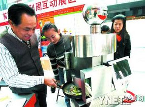 展臺上,一臺廚房機器人特別吸引參觀者的注意,機器人看上去像是一摞鐵籠屜,背后有各種作料罐,胸前連接著鍵盤和顯示器。機器人的發(fā)明者向記者演示了一下操作流程,只要放入原材料,點擊電腦中的菜單,機器人就會自動定時翻炒,幾分鐘一盤熱菜就出鍋了。“目前我已經(jīng)開發(fā)了200個菜單,宮保雞丁、魚香肉絲這樣的家常菜,機器人都能炒,而且味道還能跟大廚較量!