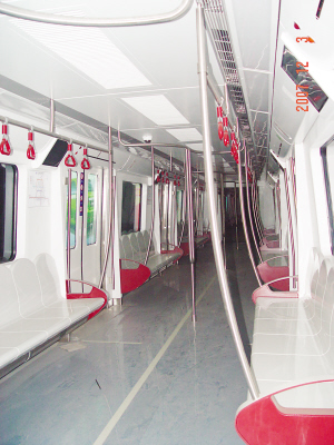 根據(jù)北京市軌道交通建設(shè)管理公司的介紹,10號(hào)線新車(chē)內(nèi)飾以白色為主,配有紅色扶手,為增加車(chē)內(nèi)的美感,車(chē)內(nèi)扶手均帶有弧度。新車(chē)車(chē)體材料全部采用高強(qiáng)度不銹鋼,車(chē)廂內(nèi)為大通道設(shè)計(jì),每輛車(chē)每側(cè)設(shè)4個(gè)雙扇內(nèi)藏電控電動(dòng)車(chē)門(mén),車(chē)前端設(shè)緊急疏散門(mén)。