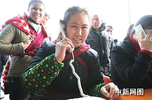 中新網(wǎng)杭州1月30日電(記者童靜宜 通訊員葉周 劉寰平) “杭州這里下雪,車子開不了。過兩天就回來了,別擔(dān)心!”在城站火車站的中國(guó)電信服務(wù)點(diǎn)上,一位湖北武昌的民工正在通過免費(fèi)公話向千里之外的親人報(bào)著平安。