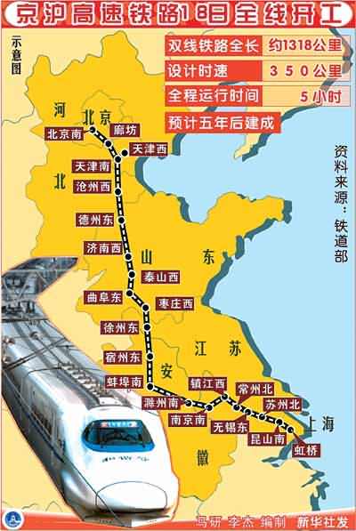 近日開工的京滬高速鐵路將創(chuàng)造多個(gè)世界及中國“之最”。